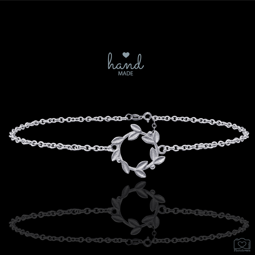 Το βραχιόλι Κότινος – στεφάνι ελιάς , είναι χειροποίητο, από ασήμι