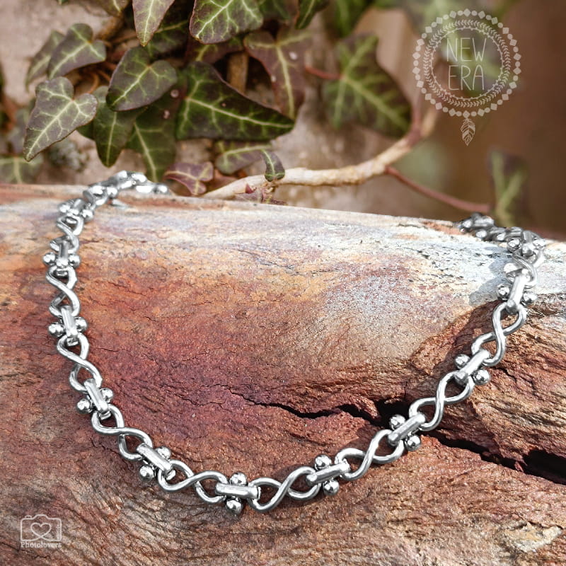 Η Timeless Chain Necklace συνδυάζει το σύμβολο του άπειρου με δεσμούς που θυμίζουν αλυσίδα ελευθερίας. Το twisted μοτίβο με τις μεταλλικές μπίλιες δίνει industrial χαρακτήρα, ενώ το ανοξείδωτο ατσάλι της χαρίζει αντοχή – όπως ακριβώς και σε εσένα.